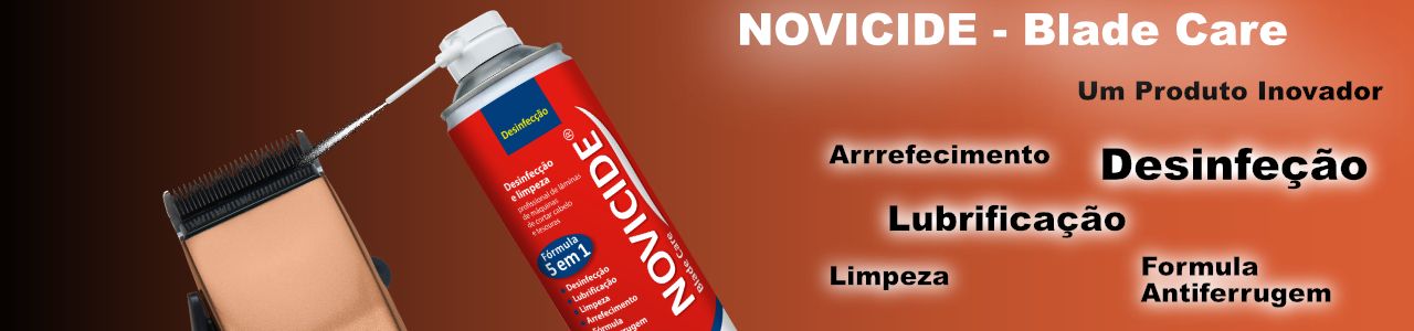 Com a máquina em funcionamento e na posição lateral (entre as laminas) pulverizar generosamente com o spray Blade Care na cabeça de corte da máquina antes do inicio/fim de cada corte de cabelo.